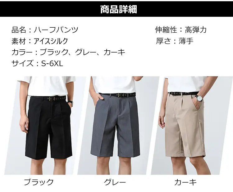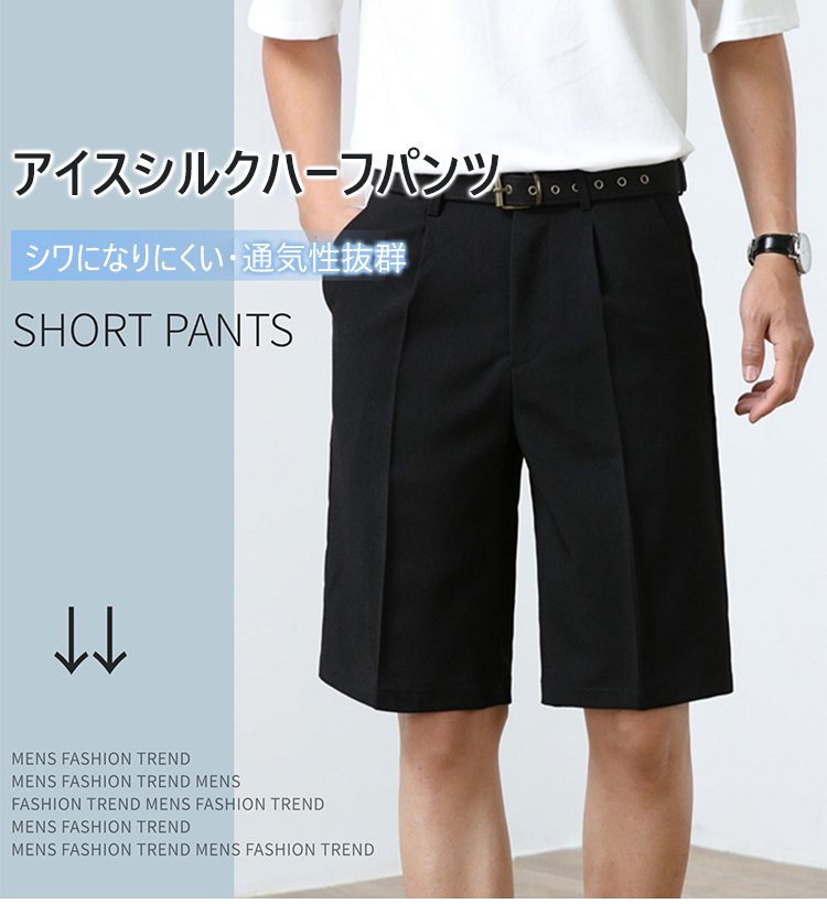 【メンズハーフパンツ】アイスシルク、接触冷感、通気性抜群、速乾、形崩れにくい